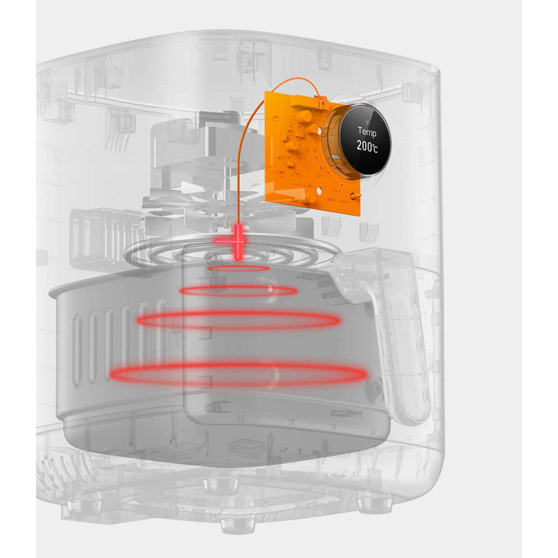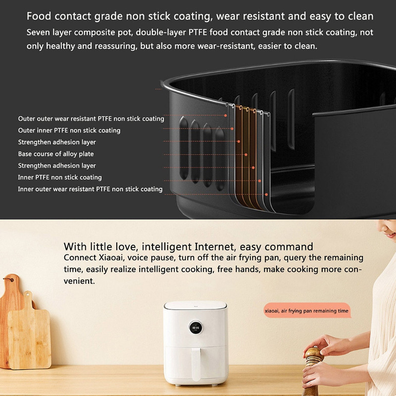 همان طور که می دانید غذاهای سرخ شده بسیار برای سلامتی مضر می باشد و متاسفانه کمتر کسی وجود دارد که از دیدن غذاهای سرخ شده لذت نبرد و اقدام به خوردن این غذاهای خوشمزه نکند. کمپانی محبوب شیائومی با تولید سرخ کن بدون روغن (هوا پز) شیائومی 3.5 لیتری مدل MAF01 China Version ، این مشکل را به آسانی حل کرده است. کاربران می توانند با خیال راحت و به صورت آسوده غذای خوشمزه سرخ شده بدون روغن را با گردش هوای گرم شده 360 درجه با دمایی بین 40 تا 200 درجه سانتی گراد آماده کند. این محصول تنها، سرخ کن بدون روغن نمی باشد و می توانید با این دستگاه به راحتی میوه خشک کرده و به عنوان یک مایکروویو یا یک فر برقی از آن استفاده کنید. ظرفیت این سرخ کن برابر با 3.5 لیتر است که برای 1 تا 4 نفر مناسب می باشد. هواپز شیائومی مجهز به یک محفظه پخت 7 لایه است که روکش 2 لایه و نچسب PTFE نیز آن را همراهی میکند، این محفظه ضدخش و بهداشتی است و میتوان با حداقل نظافت آن را مورد استفاده قرار داد. به همین ترتیب بخش گریل نیز جهت نظافت آسان و برای جلوگیری از خراب شدن به آسانی از هواپز جدا می شود. همچنین گریل جداشدنی را می توان به راحتی تمیز کرد تا از تجمع و تخریب روغن جلوگیری شود.ابعاد محصول 240x265x245 میلی متر است. سطح زیرین آن دارای پایه هایی محکم است، بنابراین می توانید به آن اعتماد کنید و آن را با خیال راحت روی سطوح مختلف قرار بدهید. لوله موج نور 1500 واتی آن تجربه پخت و پز را بهینه میکند. هواپز هوشمند شیامی می تواند غذاها را در دماهای بالا و نیز در دمای پایین بپزد. همچنین در صورت نیاز قادر به حفظ دمای ثابت است. وقتی می خواهید ماست درست کنید فقط باید گرما را روی دمای ثابت 40 درجه سانتی گراد قرار دهید و مدت 8 ساعت برای تخمیر شیر صبر کنید تا یک ماست دلپذیر برای شما آماده شود. همچنین می توانید گرما را روی دمای 60 درجه قرار دهید و 4 ساعت صبر کنید تا آب غذا گرفته شود و بپزد و این گونه میوه و گوشت را خشک کنید و در دمای 45 درجه به راحتی مواد غذایی را از فریزر خارج کرده و حدودا 10 دقیقه طول میکشد.