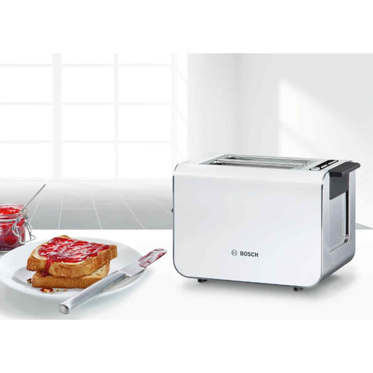 تلفیقی از پلاستیک و فلز، به TAT8611 ظاهری خوشایند بخشیده و زیبایی آن را دوچندان کرده است. این توستر گران قیمت از محصولات بسیار با کیفیت شرکت بزرگ بوش است. برای آن دسته از کاربرانی که علاقه دارند وسایل آشپزخانهشان لوکس و مدرن باشد توستر TAT8611 انتخاب حساب شدهای است. میزان تست و برشته شدگی نان در این مدل به وسیلهی دکمههای مثبت و منفی تعبیه شده در کنترل پنل (در پنج درجه) قابل تنظیم است. روشن/خاموش، یخزدایی و توقف عملیات از دیگر دکمههای کنترل پنل این مدل هستند. از جمله نکات قابل توجه در مورد کنترل پنل این توستر میتوان به نشانگرهای نورانی قرار گرفته در کنار دکمهها اشاره کرد.