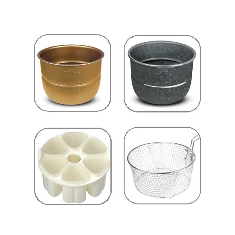 دیگ اضافه / قالب کیک / استیمر(بخار پز ) / دستگیره / درب مجزا / توری سرخ کن / دو عدد قابلمه نانو گرانیتی