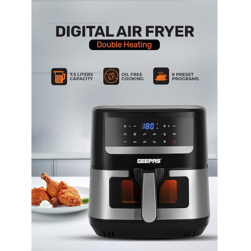 سرخ کن دیجیتال 9.2 لیتری با قفسه و روکش نچسب که برای تهیه یک وعده غذایی خانوادگی برای تهیه خوشمزه ترین غذاها و تنقلات بدون روغن و تا 80 درصد چربی کمتر مناسب است. برای پخت غذای کاملا پخته، سالم و کم چرب بدون روغن برای کل خانواده ایده آل است.