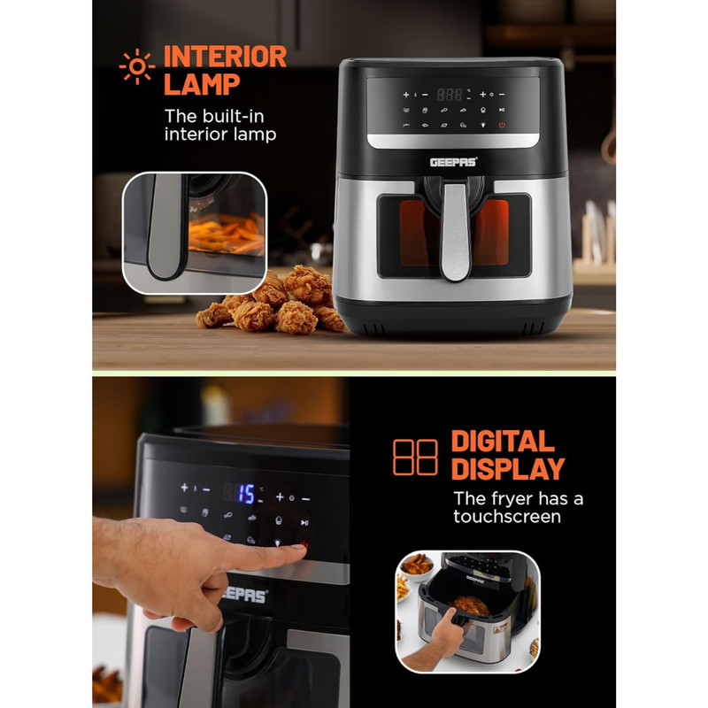 این سرخ کن مجهز به نمایشگر دیجیتال LED با 9 برنامه پخت از پیش تعیین شده است و برای پخت و پز بدون روغن و درست کردن سیب زمینی سرخ کرده، نان، کیک، گوشت، مرغ، استیک و غیره مناسب است.