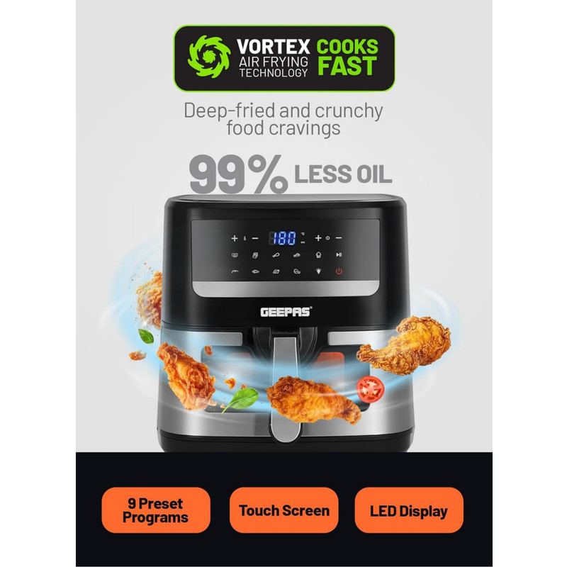 سرخ کن از فناوری VORTEX استفاده می کند که غذا را 30٪ سریعتر طبخ می کند در حالی که 99٪ روغن کمتری مصرف می کند و نتایج خوشمزه و بدون چربی را به همراه دارد.