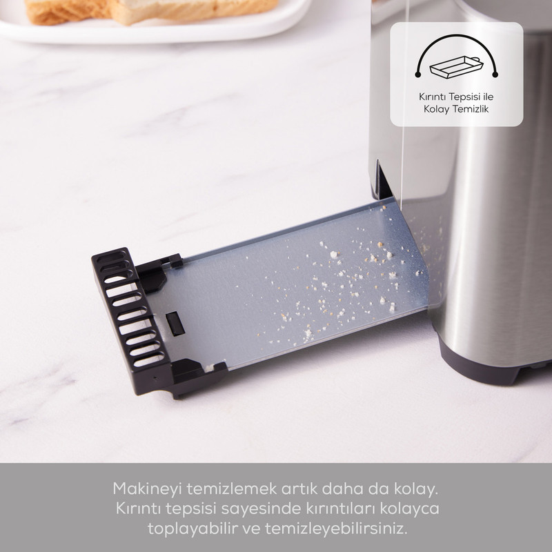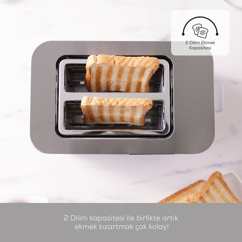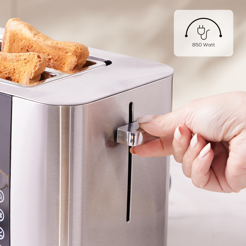 توستر Karaca Inox با نمایشگر دیجیتال به شما امکان می دهد تا با قدرت چشمگیر 850 وات خود، تمام قسمت های برش های نان خود را به طور یکنواخت و سریع برشته کنید.