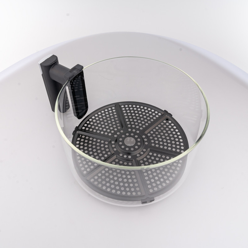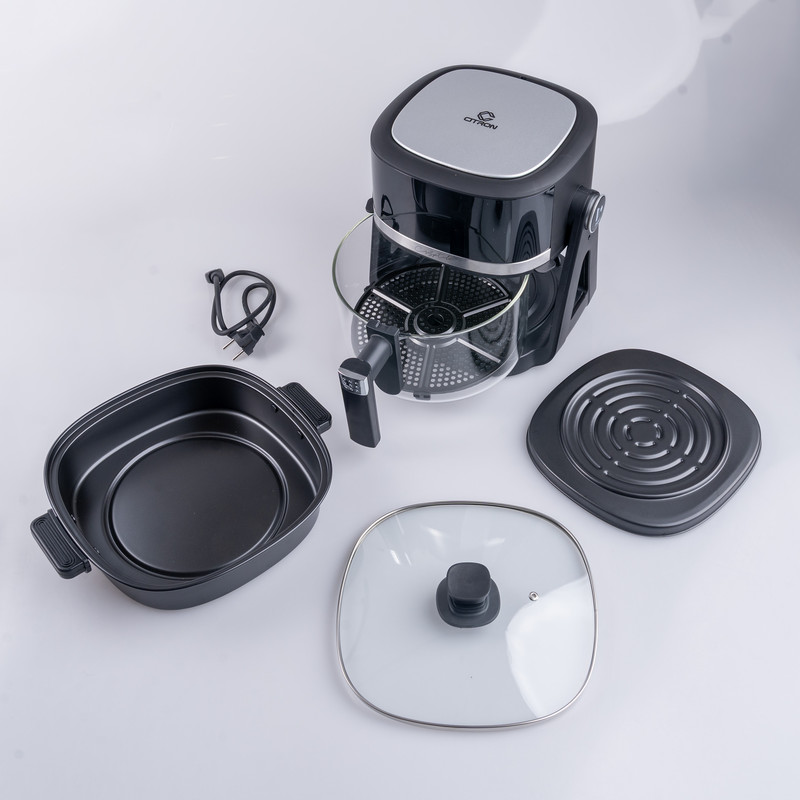 این مدل به همراه سبد هواپز شیشهای ۵ لیتری، ظرف گریل و سوپساز ۲.۵ لیتری با درپوش شیشهای و صفحه گریل نچسب عرضه میشود و با چرخش ۱۸۰ درجه دستگاه میتوان به راحتی از آن به صورت سهکاره استفاده کرد. این قابلیت امکان تهیه انواع غذاها، میان وعدهها، نان و شیرینی، گریل گوشت و سبزیجات، خشک کردن میوه و حتی یخزدایی مواد غذایی منجمد را با کیفیت عالی فراهم میکند.