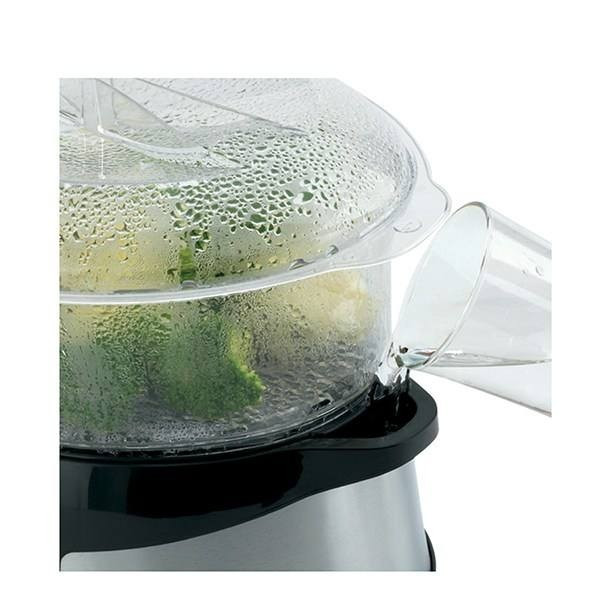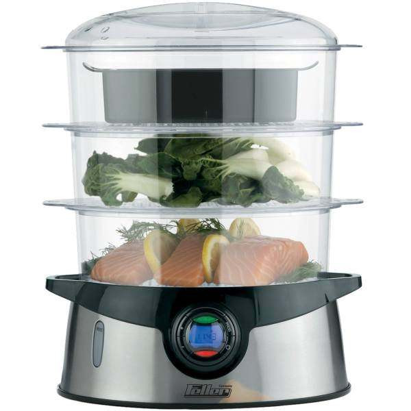 بخارپز «فلر» مدل «SC380» از بهترین بخارپزهای بازار است که با ظاهری زیبا و بهرهگیری از مواد باکیفیت، پخت راحت و سالم غذا را به ارمغان میآورد. وجود سه طبقه، امکان پخت موادغذایی را در حجم و تنوع زیاد فراهم کرده و بخارپز مدل SC89 را برای خانوادهها، ورزشکاران، افراد مسن و تقریبا هرکسی که بهسلامتی خود اهمیت میدهد، ایدئال میکند. طبقات این بخارپز از جنس پلاستیک مقاوم با کفیهای مشبک است که قرارگیری موادغذایی مختلف و درعینحال عبوردادن بخار را امکانپذیر میکند. این طبقات طوری طراحی شدهاند که بهراحتی رویهم قرار میگیرند و اگر به طبقات در تعداد کمتر نیاز باشد، بهراحتی جداشده و تنها یک یا دوطبقه از آن استفاده میشود. توان بالای این دستگاه میتواند در کمتر از یک دقیقه، تولیدبخار کند. روی بدنهی این دستگاه، نشانگر میزان آب وجود دارد که با یک نگاه میتوانید میزان آب داخل دستگاه را مشاهده کرده و در صورت کمبود، از دو ورودی چپ و راست به دستگاه آب اضافه کنید. کنترل دستگاه توسط دکمههای جلوی بخارپز انجام میشود که میتوان با آن بهراحتی دما را کنترل کرد و حتی برای پخت، برنامهریزی انجام داد. نمایشگر عددی در جلوی دستگاه به تنظیمات بهتر کمک میکند. حفظ ارزش موادغذایی و از همه مهتر نیازنداشتن به روغن، باعث تهیهی یک وعدهی غذایی سالم میشود و استفاده از این دستگاه را توجیه میکند.