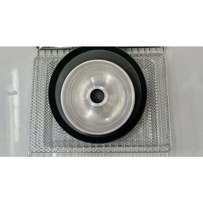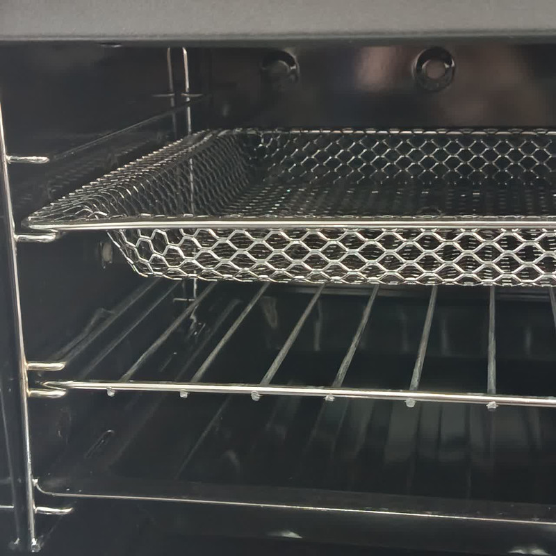 یک قالب پیتزا قطر 30 سانتیمتر یک شلف گریل یک توری میوه خشک کن یک قالب کیک 3 تخم مرغی سینی تمام لعاب سیخ جوجه گردان