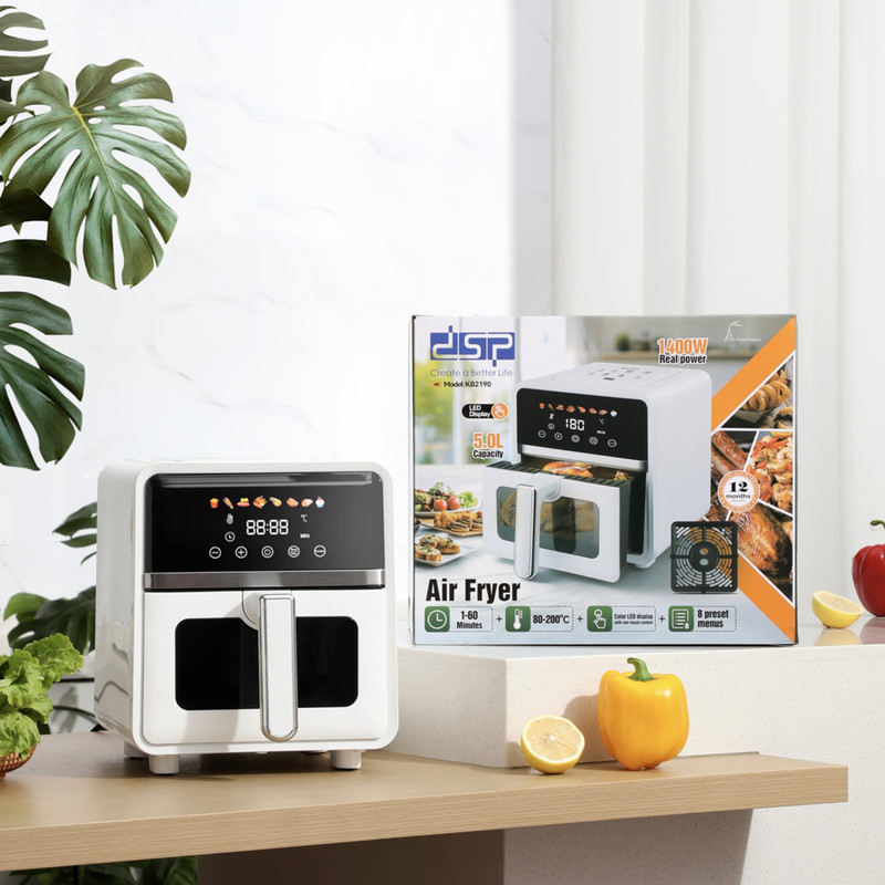 سرخکن دیجیتال DSP KB2190 یکی از محصولات مدرن و کاربردی برای آشپزخانههای امروزی است که امکان پخت غذاهای سالم و کمچرب را فراهم میکند. این دستگاه با توان 1400 وات و ظرفیت 5 لیتری، انتخابی ایدهآل برای خانوادههای متوسط به شمار میرود.