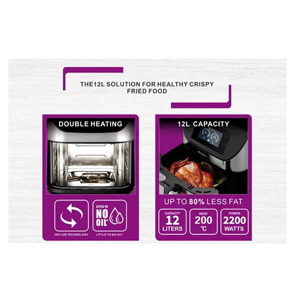 ظرفیت بالای ۱۲ لیتری این سرخکن باعث میشود برای خانوادههای پرجمعیت یا مهمانیها کاملاً مناسب باشد. المنتهای مجزا در بالا و پایین دستگاه حرارت یکنواختی ایجاد میکنند و باعث پخت بهتر و طلایی شدن سطح غذا میشوند. همچنین محفظه داخلی تمام استیل علاوه بر دوام بالا، باعث تمیز شدن آسانتر دستگاه و مقاومت در برابر حرارت میشود.