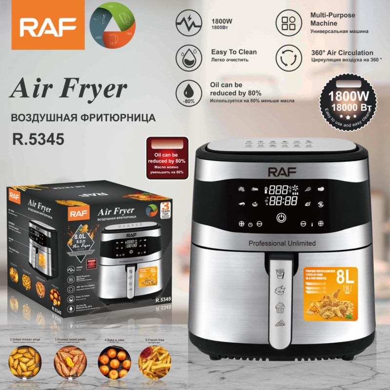 سرخکن بدون روغن راف مدل R.5345 یک انتخاب ایدهآل برای کسانی است که میخواهند غذاهای خوشمزه و ترد را با حداقل چربی و حداکثر سلامت تهیه کنند. این دستگاه با توان قدرتمند ۱۸۰۰ وات و فناوری چرخش ۳۶۰ درجه هوا، غذا را بهصورت یکنواخت و سریع پخته و تا ۸۰ درصد چربی کمتر را در نتیجه نهایی به ارمغان میآورد.