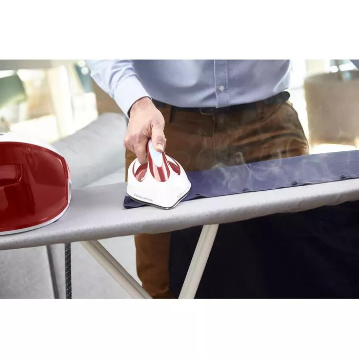 اتو مخزن دار تفال SV8030 از جمله محصولات با کیفیت برند تفال می باشد. برند تفال جزو یکی از معتبر ترین برند ها در زمینه ی تولید لوازم برقی خانگی می باشد. این اتو دارای رنگ بدنه ی قرمز و سفید می باشد. این رنگ جلوه ی بسیار زیبا و شیکی دارد. جنس بدنه ی این اتو مخزن دار تفال مدل SV8030 نیز از پلاستیک ABS ساخته شده است. این نوع از پلاستیک، بسیار مقاوم و ضد ضربه می باشد. این اتو دارای قابلیت هشدار آماده به کار شدن دستگاه می باشد. این قابلیت موجب می شود تا شما زمان زیادی را صرف انتظار برای آماده به کار شدن دستگاه نکنید و به محض آماده به کار شدن، آگاه خواهید شد.