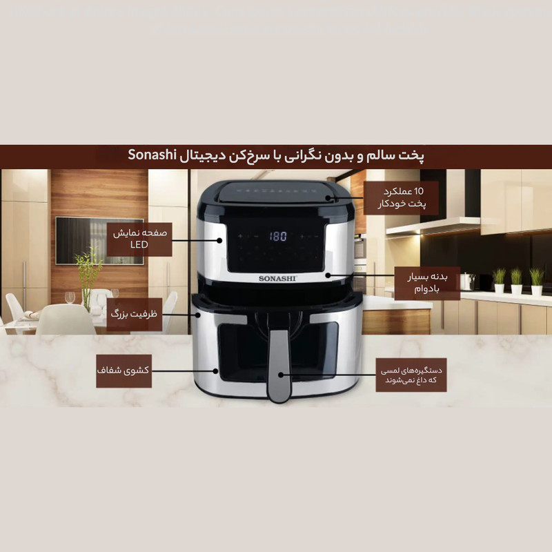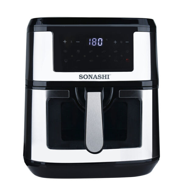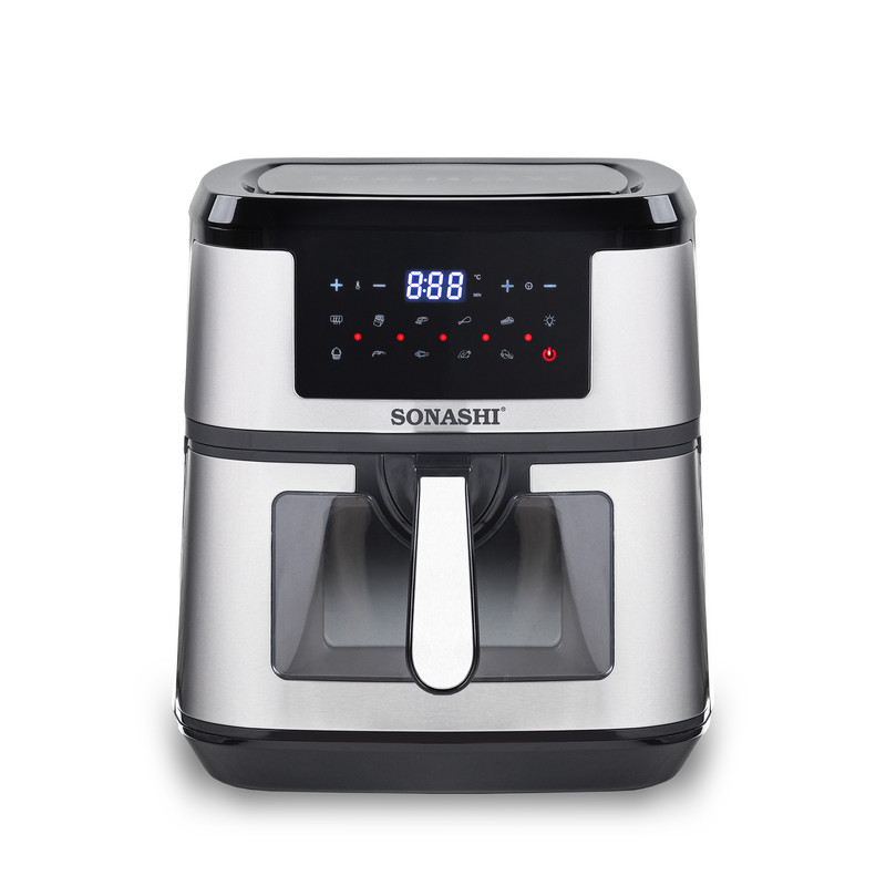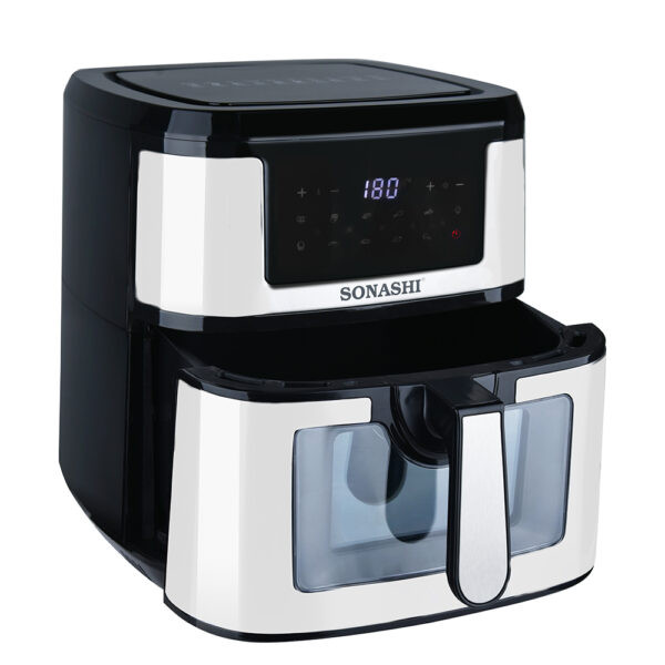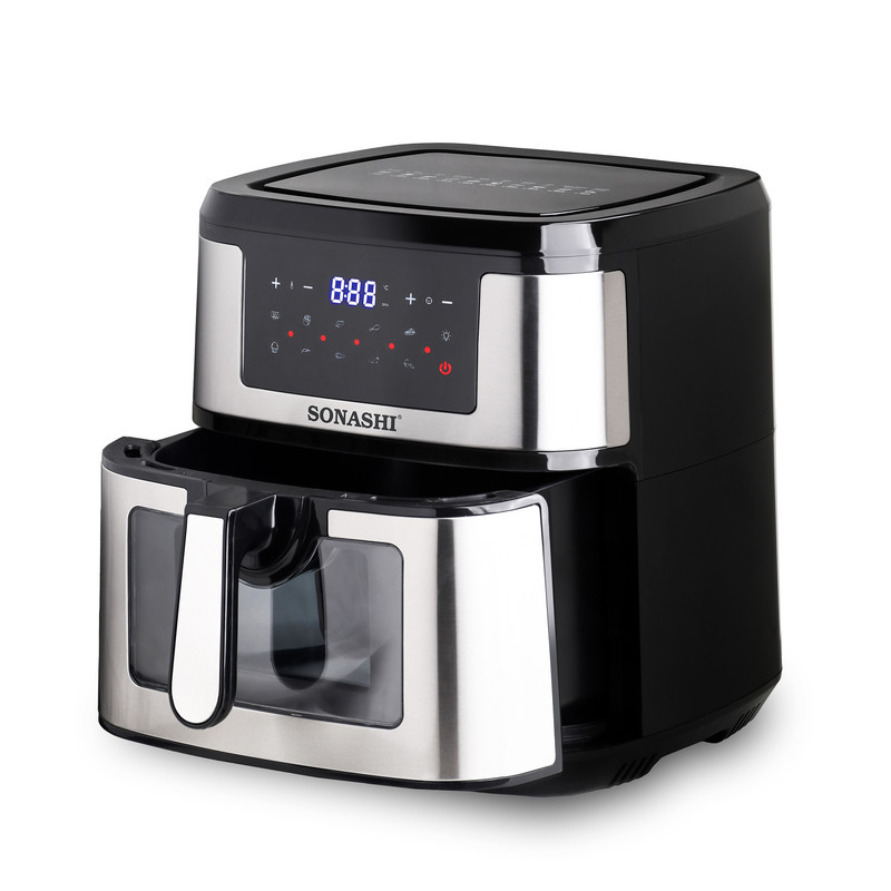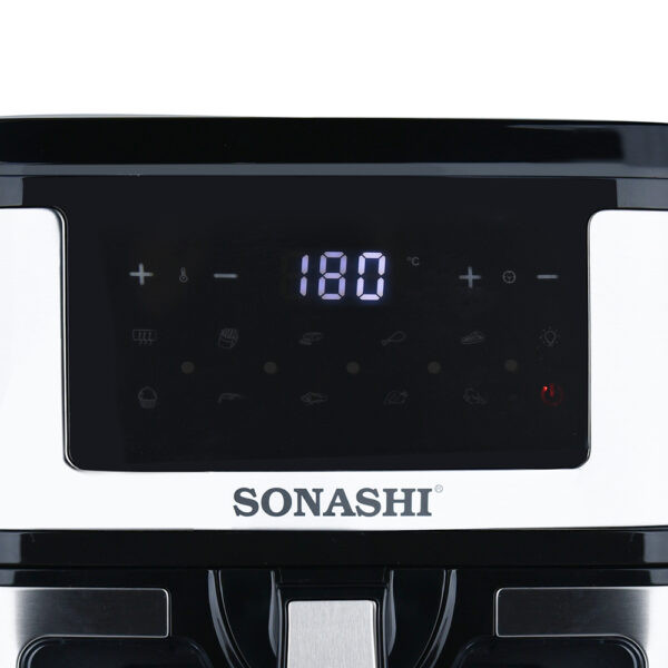 سرخ کن SAF-950 یکی از سرخ کن های جدید بدون روغن سوناشی است که به تازگی وارد بازار شده. این سرخ کن دارای 10 برنامه پخت است یعنی سبزیجات گوشت ، مرغ، کیک، و دیگر برنامه ها که در منوی دستگاه قابل مشاهده است.حجم این سرخ کن 9.2 لیتر است که به راحتی میشه یه مرغ درسته رو سرخ یا بریون کرد. خصوصیت اصلی این سرخکن کشوی شفاف اون است که فرایند سرخ کردن را قابل مشاهده می کند! دمای این دستگاه از از 50 تا 200 درجه سانتیگراد قابل تنظیم است، دیگر ویژگی مهم و متمایز این سرخ کن صفحه نمایش تمام لمسی اون است که کمتر برندی این امکان را دارد! جنس روکش تابهی این دستگاه از تفلون و توان دستگاه 1800 وات میباشد.