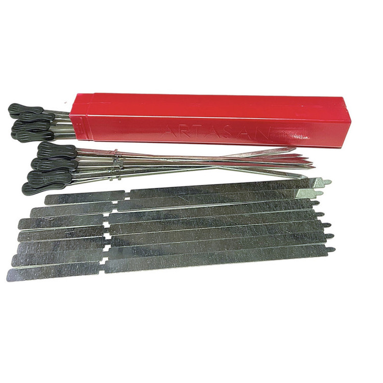 14 عدد سیخ جوجه استیل 7 عدد سیخ کوبیده استیل 2 عدد سینی استیل سیخدان