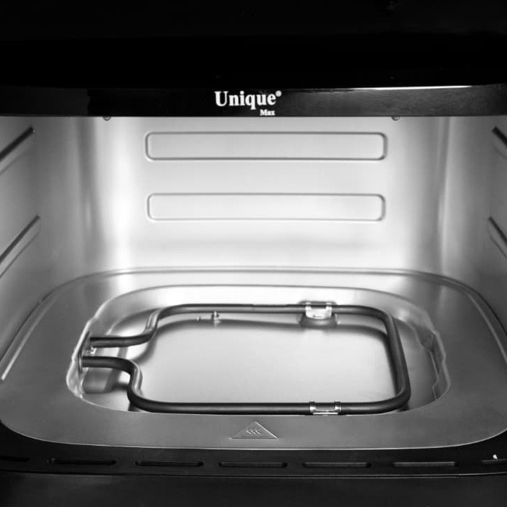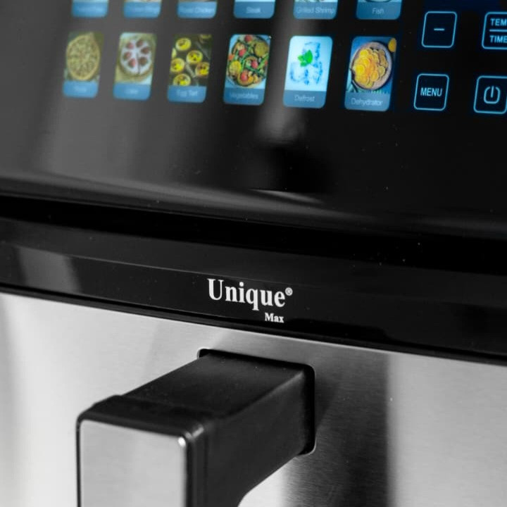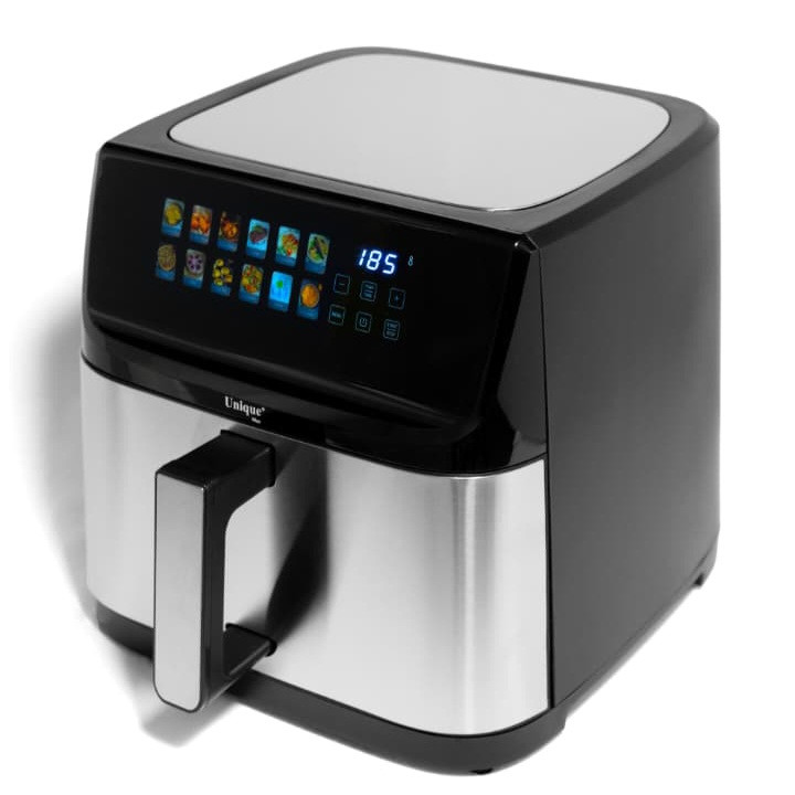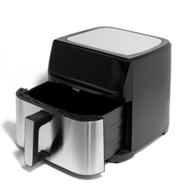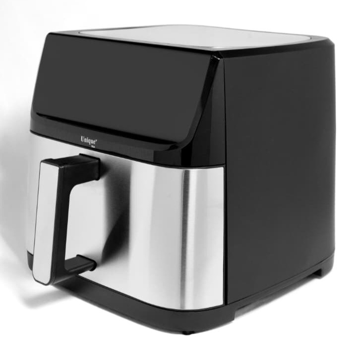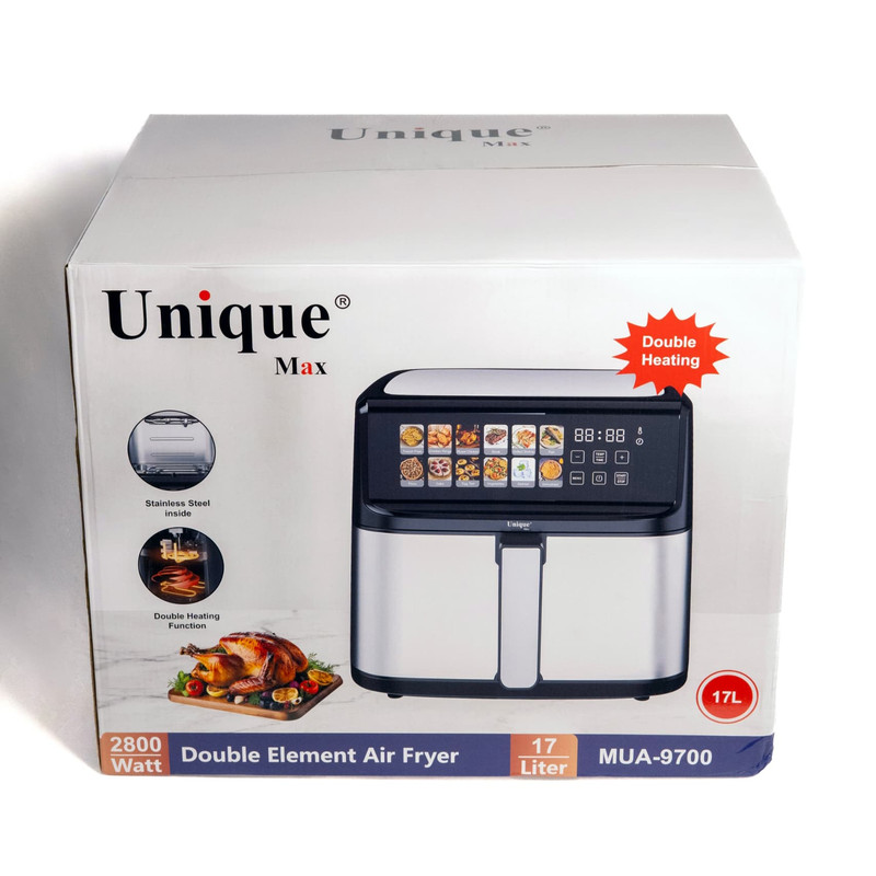 سرخ کن بدون روغن یونیک مکس مدل دوالمنت MUA-9700با طراحی زیبا و ظرفیت 17 لیتری مناسب انواع پخت و پز رژیمی و بدون روغن است.این مدل دارای بدنه تمام استیل دو جداره است و هنگام استفاده از دستگاه بدنه آن گرمایی ندارد که جز نکات ایمنی این دستگاه میباشد. چیزی که این سرخ کن را از دیگر سرخ کن های بازار متمایز میکند داشتن دو المنت در بالا و پایین دستگاه و همچنین صحفه نمایش رنگی تصویری است.سرخکنهای دو المنت علاوه بر المنت بالایی، یک المنت دیگر نیز در قسمت پایین دارند. این طراحی باعث میشود گرما از دو جهت به مواد غذایی برسد و به طور یکنواختتری آنها را بپزد. سرخکن دو المنته با بهرهگیری از دو المنت گرمایشی، پختی سریعتر و یکنواختتر را ارائه میدهد.همچنین این دستگاه دارای و فناوری پیشرفته Rapid Airمیباشد. سرخ کن یونیک مکس دارای برنامه های متنوع پخت است که قابلیت تنظیمات به صورت دستی هم در اختیار کاربران خود میدهد. این سرخ کن حرفه ای دارای 12 برنامه پخت غذا از جمله پخت کیک،کوکی و کلوچه-کباب کردن انواع گوشت مرغ و ماهی-سیب زمینی-برنامه مخصوص پخت میگو و سایر غذا های دریایی، برنامه مخصوص پخت پیتزا و در آخر برنامه مخصوص سبزیجات که علاوه بر اینکه امکان پخت انواع صیفی جات را به شما میدهد این امکان را دارد که سبزیجات مورد علاقه شما را خشک کند که از این حالت برای خشک کردن میوه هم میتوان استفاده کرد. جنس بدنه از استیل ضد خش و با کیفیت بالا میباشد و دارای نمایشگر لمسی بزرگ رنگی است که تمام محفظه جلو دستگاه را پوشش داده و نمای بسیار زیبایی به این سرخ کن در آشپزخانه شما میدهد.این دستگاه دارای ظرفیت بالا 17 لیتر و قدرت بالا 2800 وات است.سرخ کن بدون روغن یونیک مکس به راحتی تمیز می شود، جنس سبد مخصوص آن نچسب است و می توانید در چند لحظه زیر آب جاری بشویید و یا در ماشین ظرف شویی قرار دهید. علاوه بر این دارای یک توری است که کف ظرف قرار میگیرد که به راحتی قابل جابجایی است که چربی که از محصولات سرخ شده در زیر آن جریان میشود را پس از اتمام کار از آن بیرون بکشید و زیر آب جاری بشویید. فرقی نمی کند سبزیجات سرخ کنید، سیب زمینی سرخ کرده یا گوشت سرخ کنید، این دستگاه همه کاره آشپزی روزمره را به یک تجربهی خلاقانه و سرشار از طعمهای سالم تبدیل میکند.