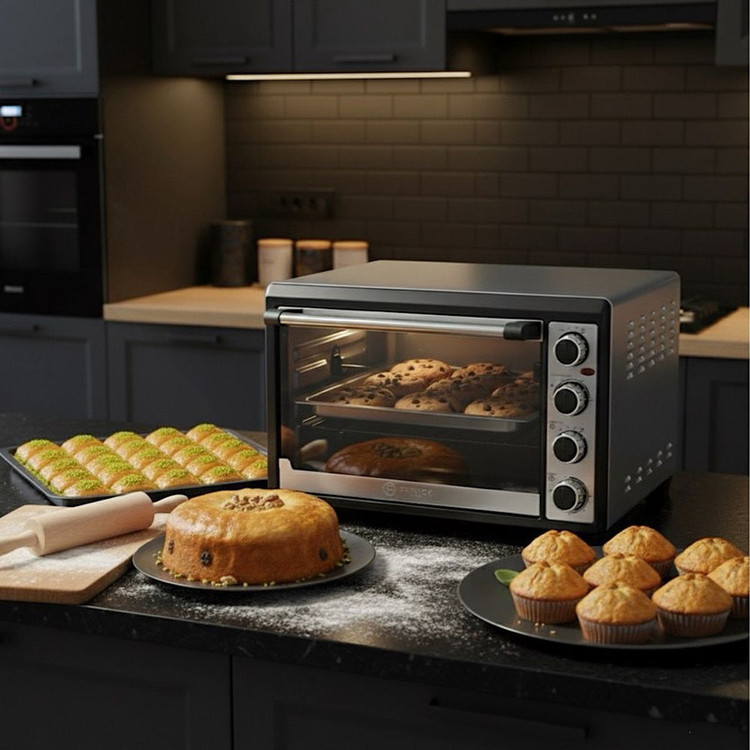 سینی ، سیخ جوجه گردان ، دو عدد دستگیره فلزی ، دفترچه راهنما و کارت گارانتی