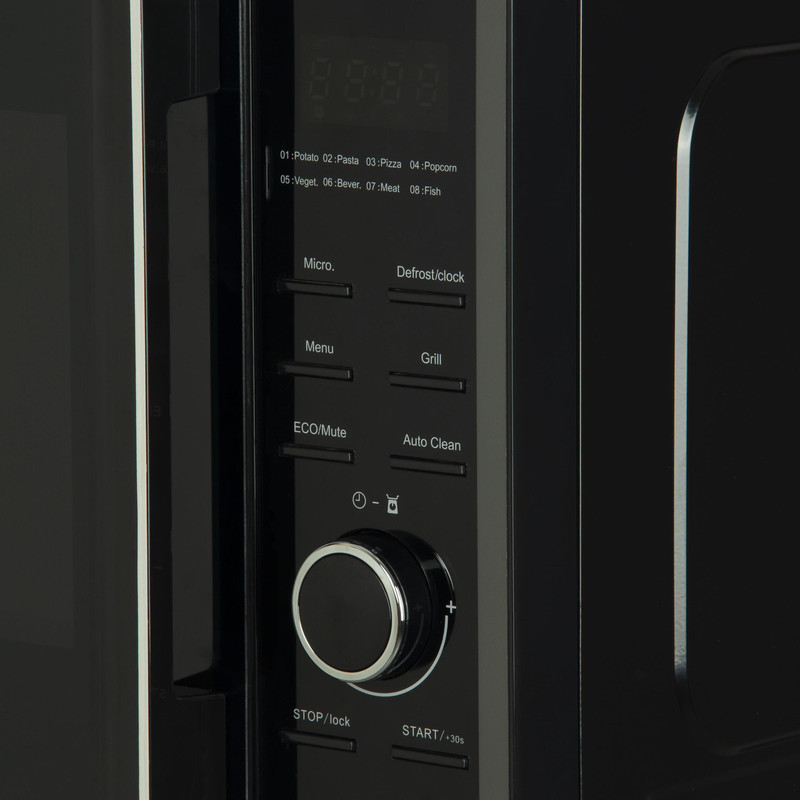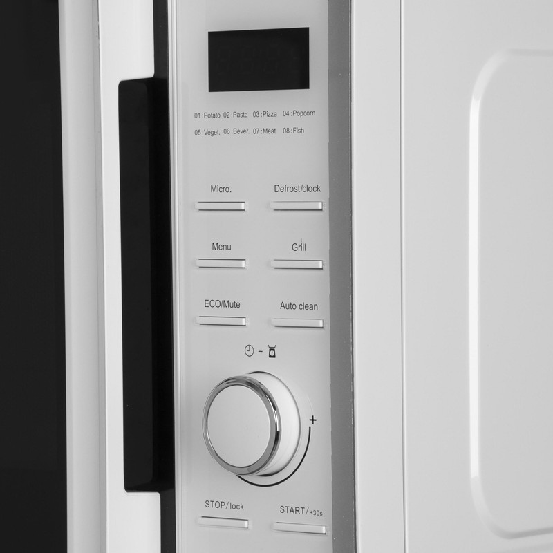 صفه نمایش دارای پخت گریل، پخت ترکیبی، قفل کودک، ساعت آشپزخانه ،سیگنال پایان پخت ، دارای برنامه پخت سریع ( ثانیه ۳۰+) Speedy cooking ،عملکرد یخ زدایی بر اساس وزن و زمان Defrost weight and Time است و دارای 8 برنامه پخت خودکار می باشد