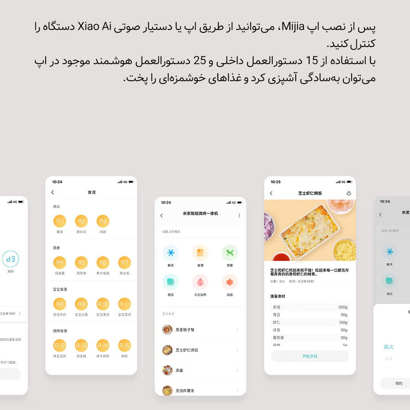 مگنترون ساخت توشیبا ژاپن دارای وای فای قابلیت برنامه ریزی به صورت دستی قابلیت ذخیره کردن برنامه پخت و پز قابلیت اتصال به اینترنت و مدیرت از طریق تلفن همراه