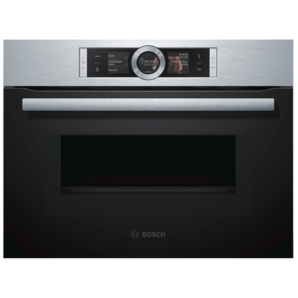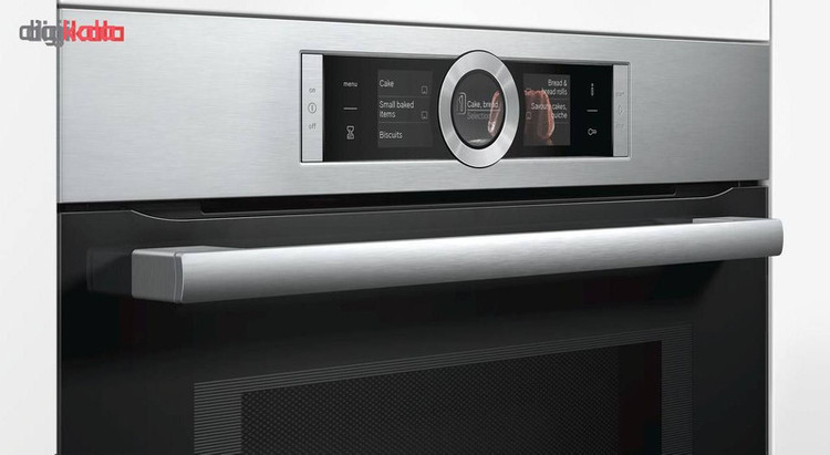 فر، مایکروفر45 سانتی متر توکار «بوش» مدل «CMG656BS1I» یکی از تولیدات باکیفیت این شرکت بهنام است. این دستگاه توکار زیبا علاوهبر کمک به استفادهی بهینه از فضا، ظاهر مدرن و شکیلی به آشپزخانهی شما میدهد. فر مدل CMG656BS1 از قابلیت عملکرد ماکروویو نیز بهره میبرد و محفظهی داخلی آن گنجایشی معادل 45 لیتر دارد و فضای بزرگی را برای پخت انواع غذا و دسر در اختیار شما میگذارد. بدنهی فر که از جنس استیل ساخته شده از مقاومت زیادی برخوردار است و خاصیت ضدزنگ دارد. تنظیمات دستگاه از طریق پنل تنظیمات بالای فر انجام میشود که به صفحهنمایش TFT با کارکرد لمسی مجهز است. تنظیم برنامهی پخت دستگاه از طریق این پنل انجام میشود. این مدل دارای 12 حالت گرمایشی است که شامل مواردی همچون هوای داغ چهاربعدی، گریل تمامعرض، گریل نیمعرض، حرارتدهی بهینه، گریل، تنظیمات پیتزا، حرارت از پایین، پخت آهسته، از پیش گرمکردن و گرم نگهداشتن میشود. امکان تنظیم درجهی حرارت فر تا حداکثر 300 درجهی سانتیگراد وجود دارد. گفتنی است این دستگاه دارای سینی فر همراه است که امکان جابهجایی و تنظیم ارتفاع آن به کمک ریلهای داخلی فر، امکانپذیر شده است و کاربر میتواند با توجه به موادغذایی مصرفی بهترین ارتفاع را برای سینیها انتخاب کند.