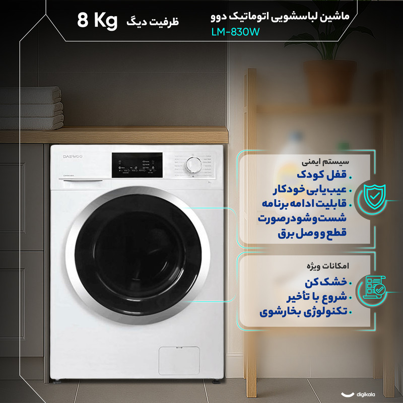 ماشین لباسشویی 8 کیلوگرم اتوماتیک دوو مدل LM-830W