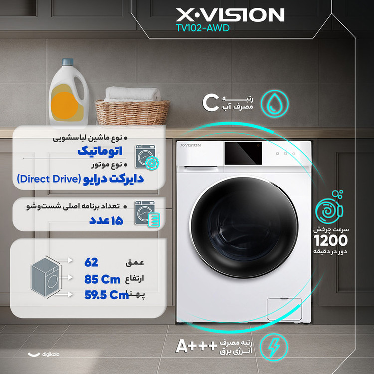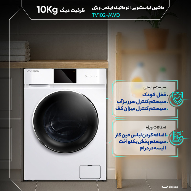 ماشین لباسشویی 10 کیلوگرم اتوماتیک ایکس ویژن مدل TV102-AWD
